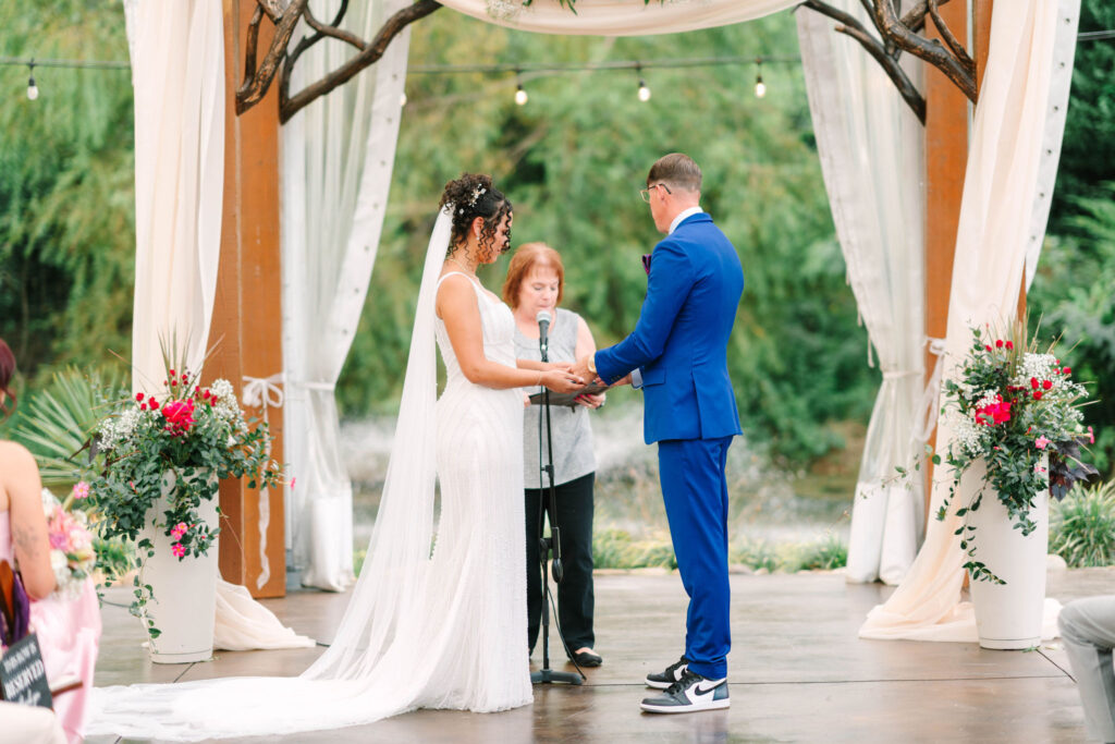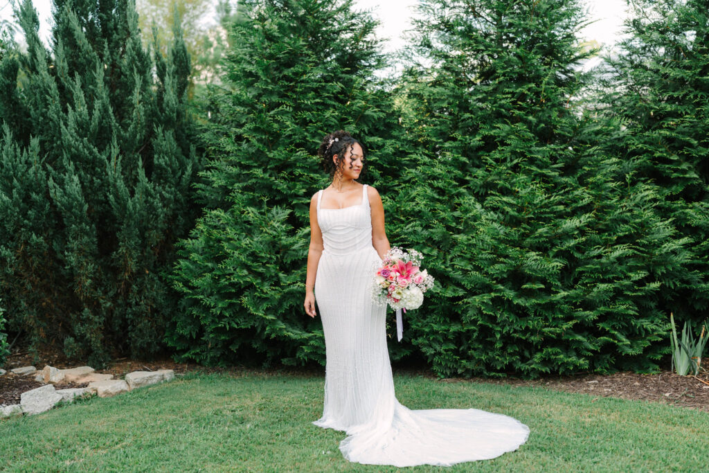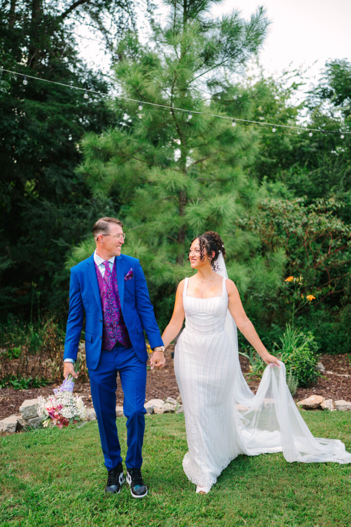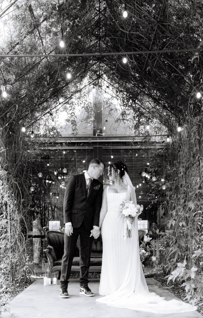 In May, Anna and Tyler chose a quiet, meaningful way to say their vows. They exchanged promises in the peaceful beauty of the Furman Asian Garden, surrounded by lush greenery and gentle reflections on the water. Their close friend officiated, while his wife joined as their only guest, making the moment feel deeply personal.
