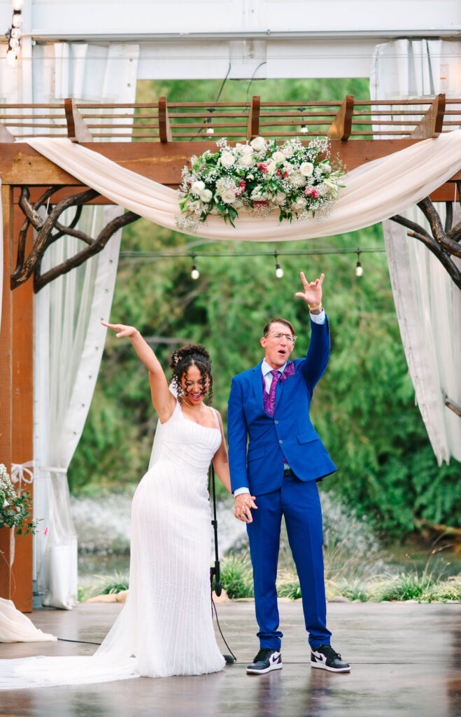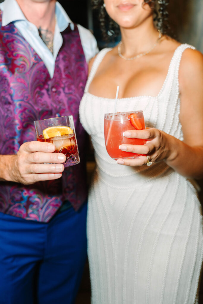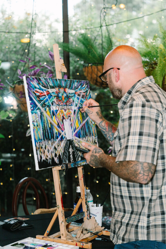 Kat and Matt wanted their guests to enjoy an unforgettable experience. They hired a live painter to create an artistic memory of their ceremony. Additionally, they also brought in caricature artists, which was a fun surprise for guests and gave everyone something personal to take home.