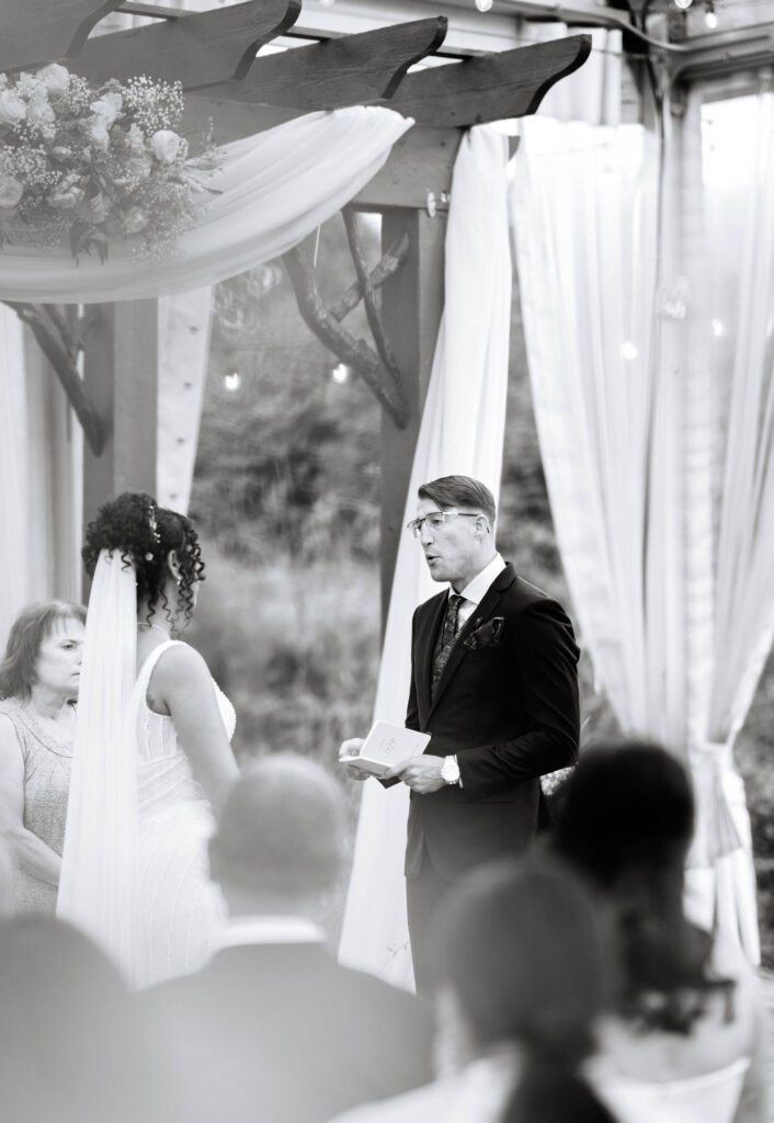 The tented ceremony space gave them peace of mind, no matter the weather. Then their reception featured a plated dinner that guests are still raving about. The food at Saskatoon’s Lodge is one of the biggest highlights and played a huge role in the experience for everyone. The location itself is another benefit! It’s close to Greenville but feels tucked away from the busyness of town, making a wedding at Saskatoon Lodge feel intimate and secluded.