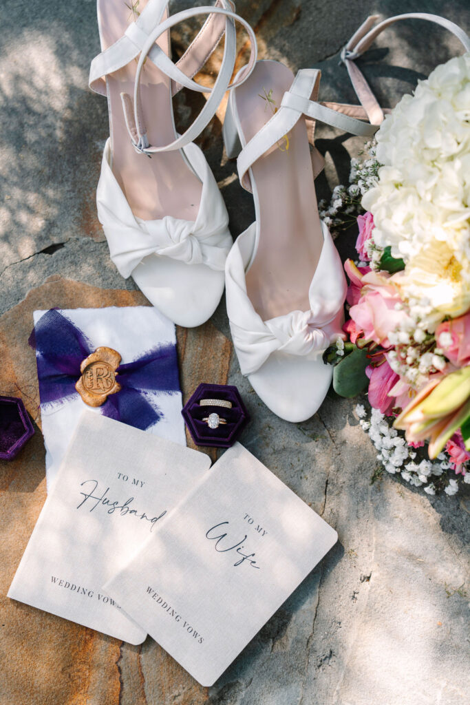 Two months later, Anna and Tyler gathered their family and friends for a joyful celebration. The Gaines Lodge at Table Rock State Park was the perfect summer venue, offering cozy charm paired with sweeping mountain views. Guests were welcomed with refreshing lavender lemonade, its delicate floral notes setting the tone for a relaxed and happy evening.