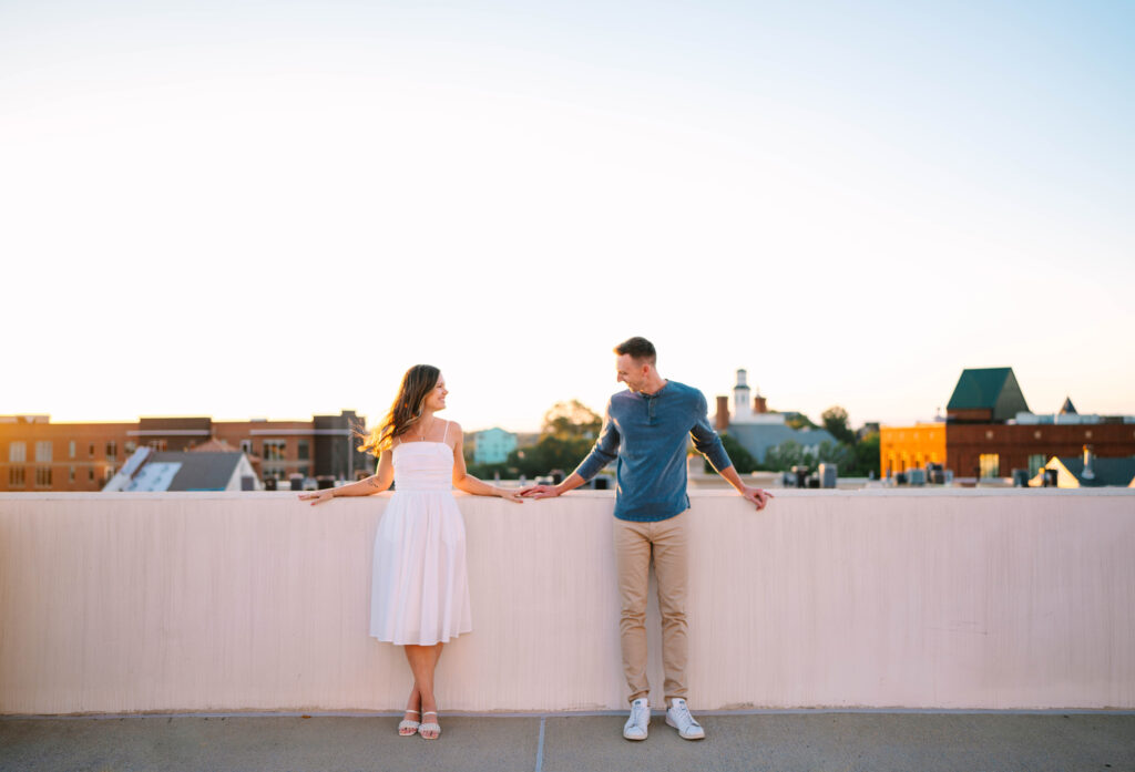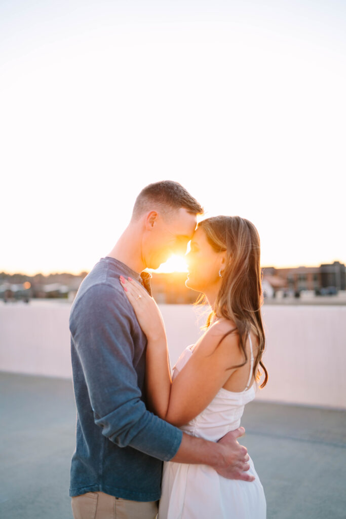 After enjoying the park’s charm, we moved to a rooftop downtown for a fresh perspective. The sun dipped lower, and city lights flickered on, casting a soft glow. The skyline created a cinematic backdrop that made every moment feel like a scene from a movie. Alex and Zack leaned into each other, laughing, whispering, and enjoying the view. Their dog even made a rooftop cameo, and it was perfect — nothing forced, nothing stiff, just genuine connection in every shot.
